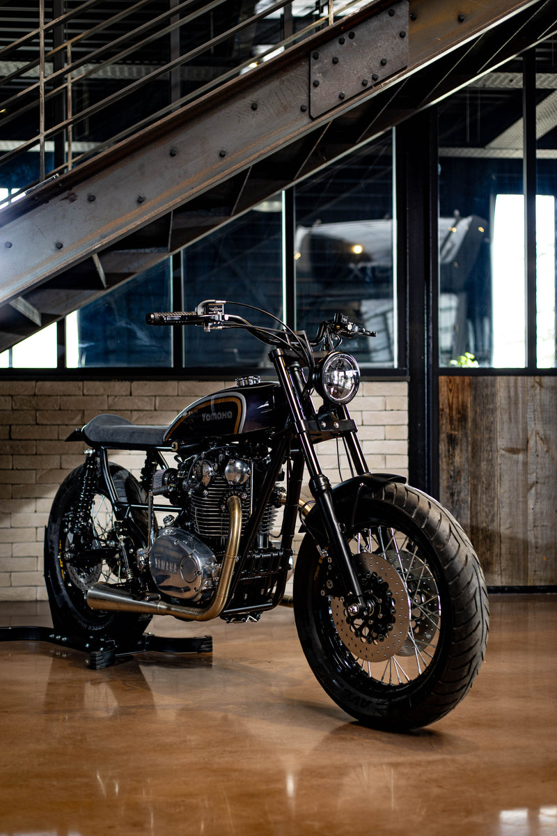 Une base de Yamaha XS650 de 1980, deux années de travail à l’atelier, une ligne radicale, un style brut et racé.